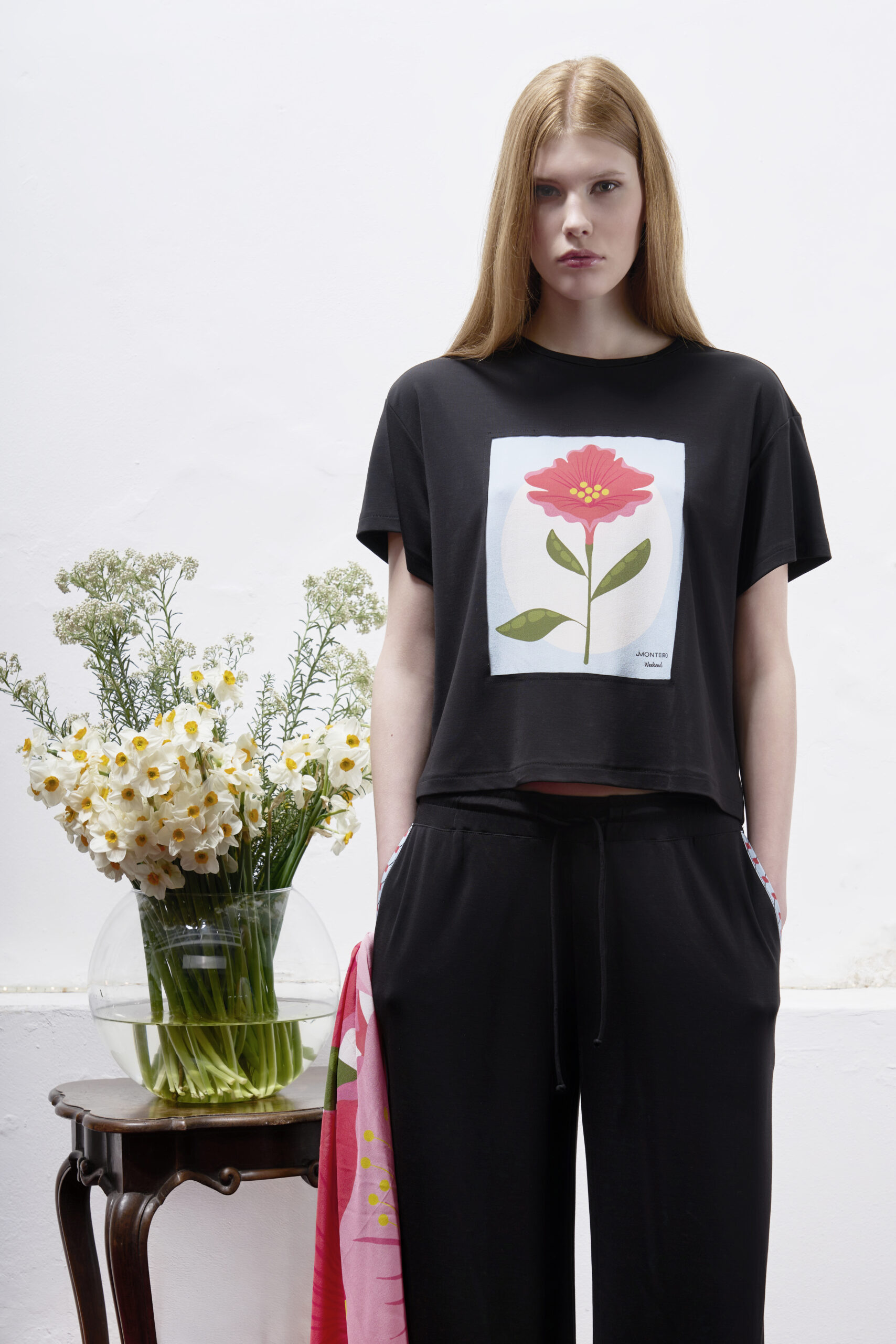 Classic T-shirt with short sleeve with insert (Flower) on the front.