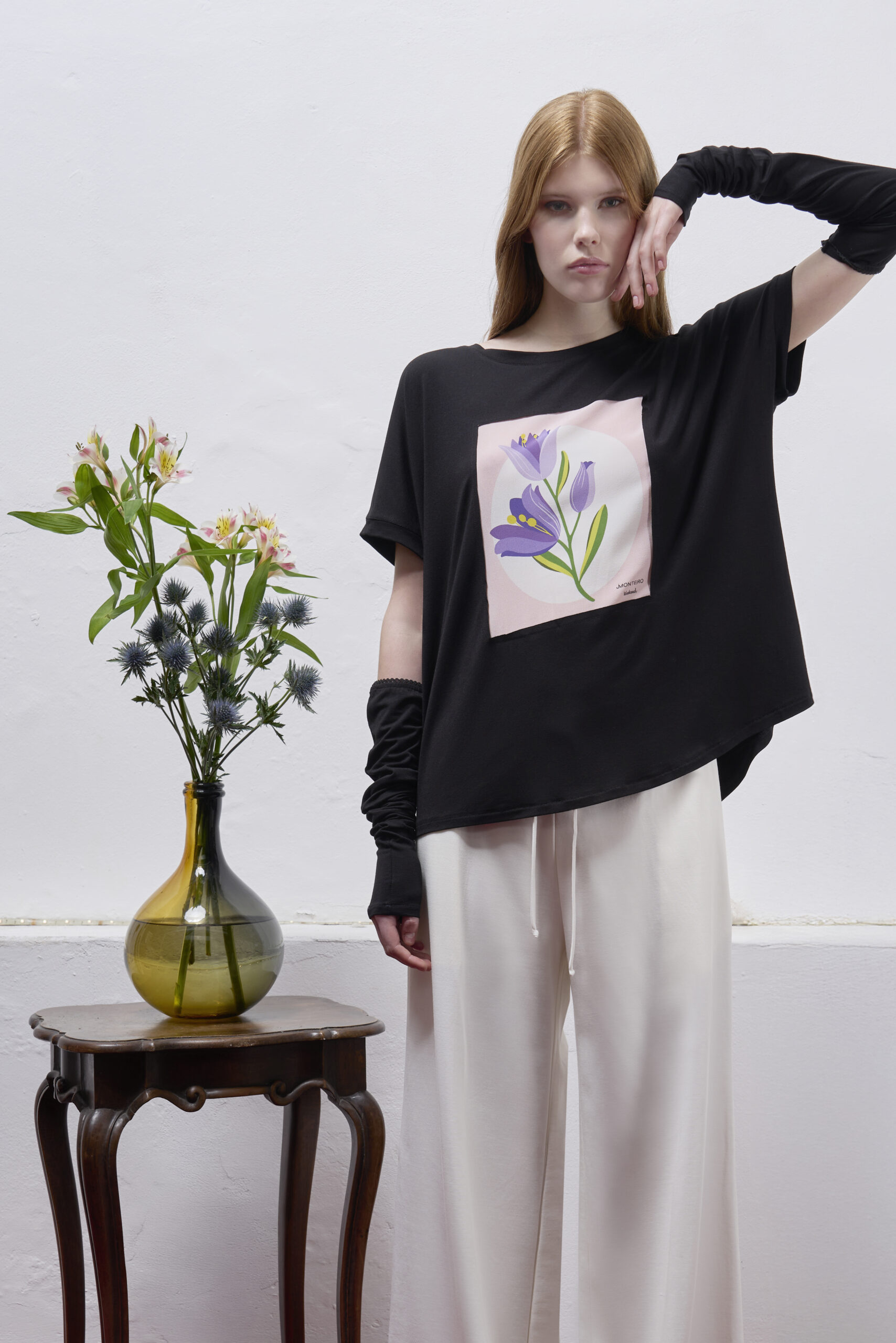 Oversize T-shirt with insert (Flowers) on the front.